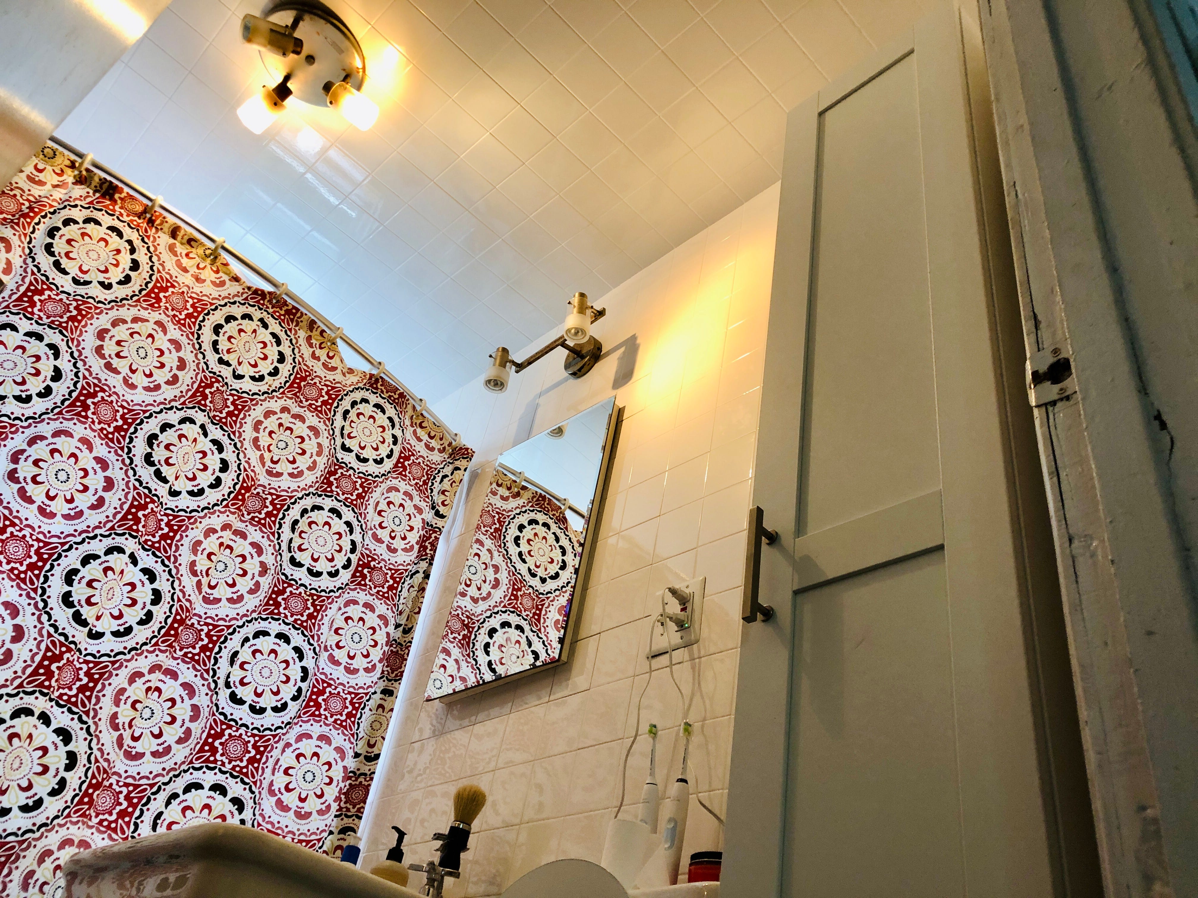 Anyway. I fell in love with this apartment when I first saw it in 2012. On the second floor, with huge east-facing windows, it gets tons of light. It has a huge yard, a washer and dryer, a finished attic with heaps of storage, one and half bathrooms, and two whole bedrooms. I was so bowled over by all of this that I was happy to overlook the off-kilter floors, the wiggly bannister, the cracked kitchen linoleum, and the absence of any bathroom storage.